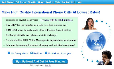 1. To register with Dial Simple, please visit at http://www.dialsimple.com/23602/affId then click on the "Signup Now! and Get 10 Free minutes" button